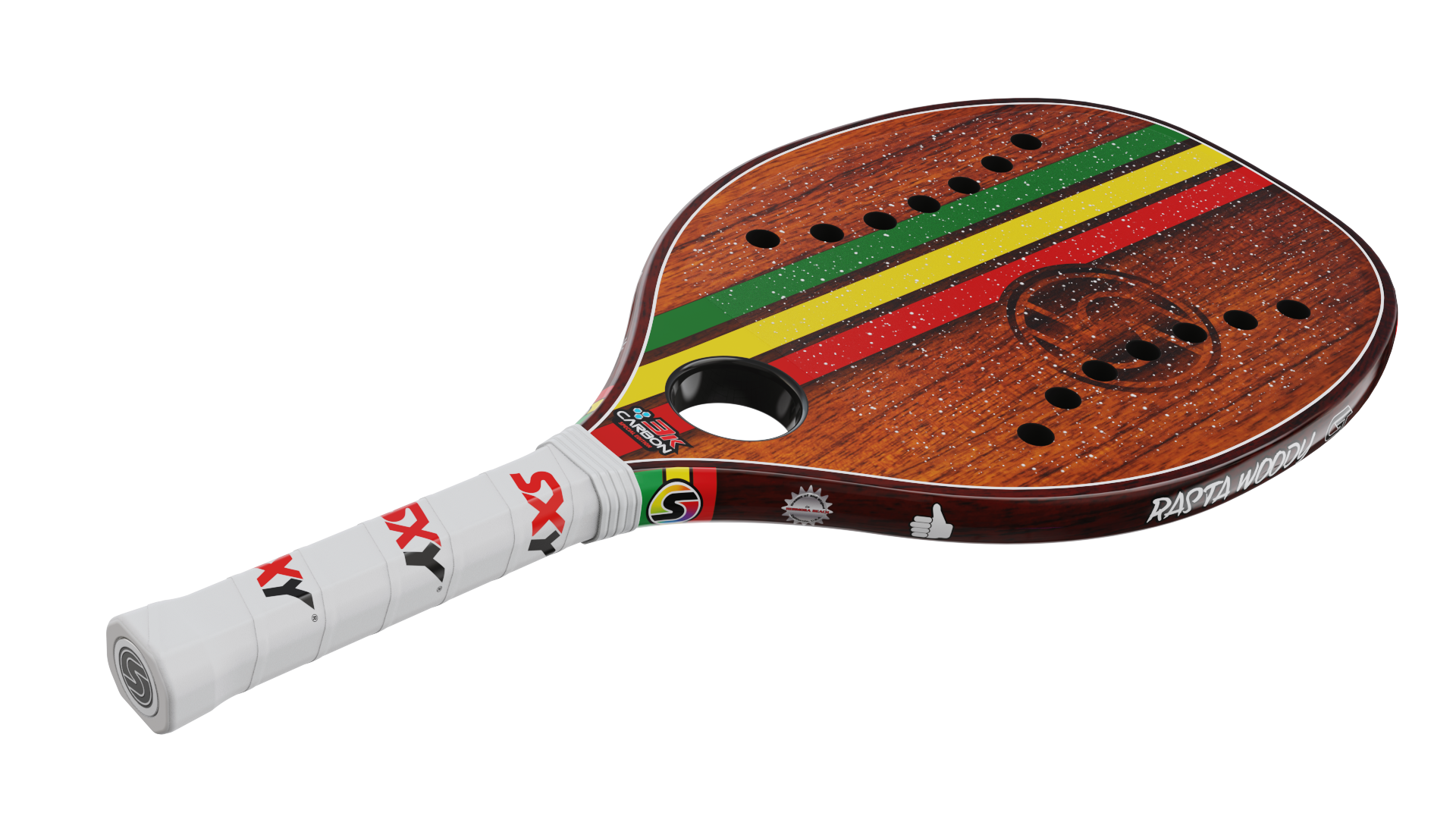 The Rasta Woody ππ is at the top of the list of Pro Level βall-courtβ Paddles but also allows you to swing harder on serves and smashes to generate more spin with our incredible MegaGrit treatment. It plays even better than it looks, world-class!