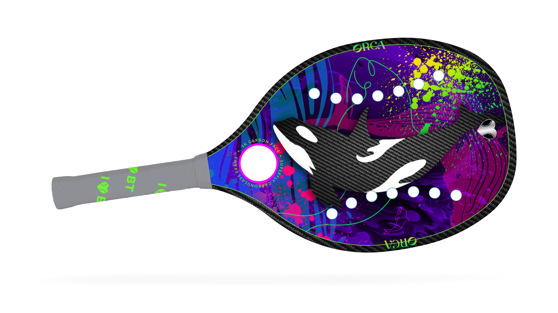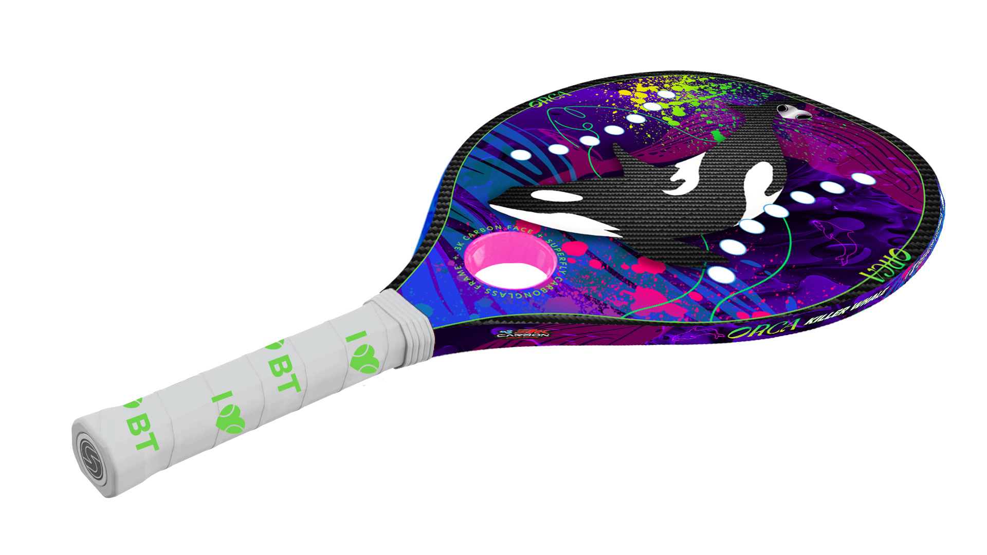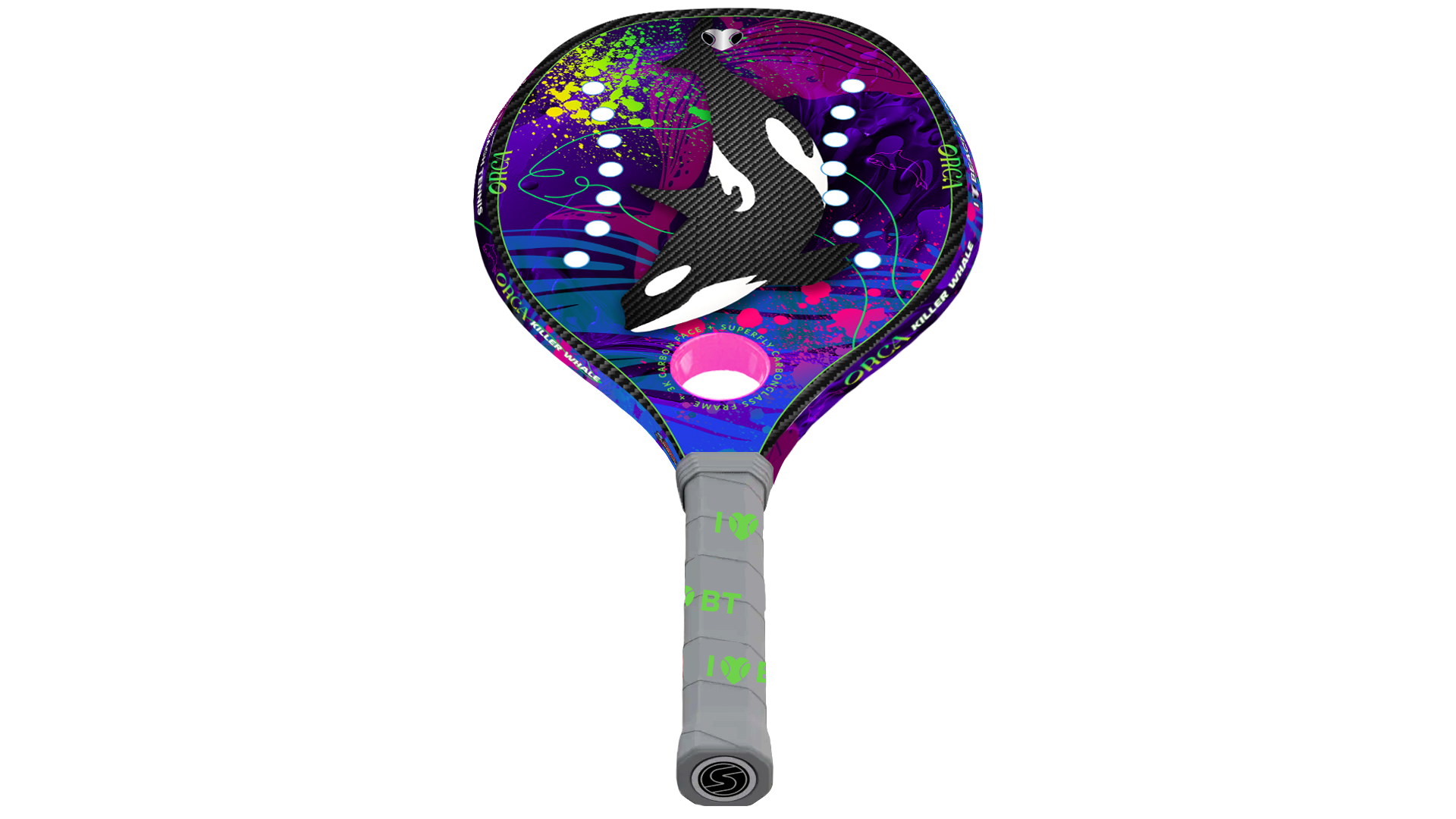 Introducing the I ❤️ BT ORCA (Killer Whale); part of the ALL-NEW Super Ultralight Paddle Line. Representing strength, power, defense, and durability, the ORCA is the perfect choice for players who need to endure longer rallies. Outlast opponents with the ORCA's powerful, yet light design, allowing for optimum performance without the extra weight. The Super Ultralight line is truly extraordinary.